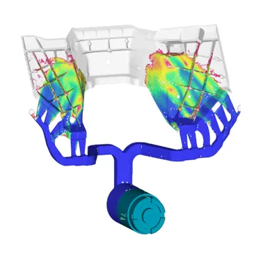 模流分析是指通过数字模拟技术,在前期设计不通的浇铸方案进行充填和凝固分析,从充填时间、流动形态、含气量以及凝固形态等多方面进行模拟,还可以进行冷却水路布置的模拟,以找出各种设计缺陷并加以改进,尽最大可能在开模前期发现问题,以获得最优的设计方案。